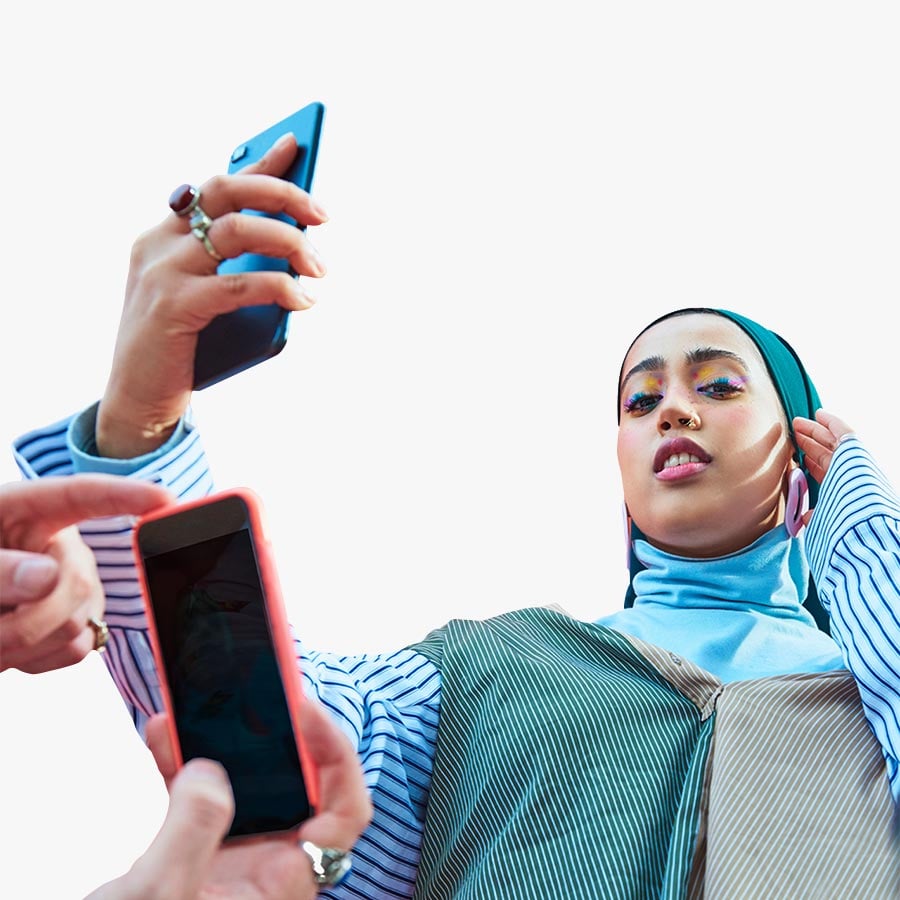 A hand holding a smartphone on which there is a Visa payment card representing Visa's digital payment options